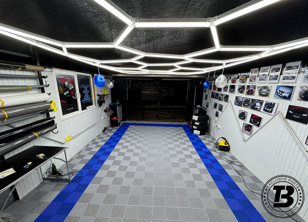 Pardoseala modulară gri deschis cu placi albastre este o alegere practică și modernă pentru garajul propriu. Combinația de culori oferă un aspect luminos și ordonat, făcând spațiul mai aerisit și mai ușor de întreținut. Designul echilibrat pune în valoare mașina și echipamentele, iar structura modulară permite personalizarea rapidă a layout-ului în funcție de nevoile tale. Rezultatul este un garaj curat, organizat și cu un look profesional, chiar la tine acasă.