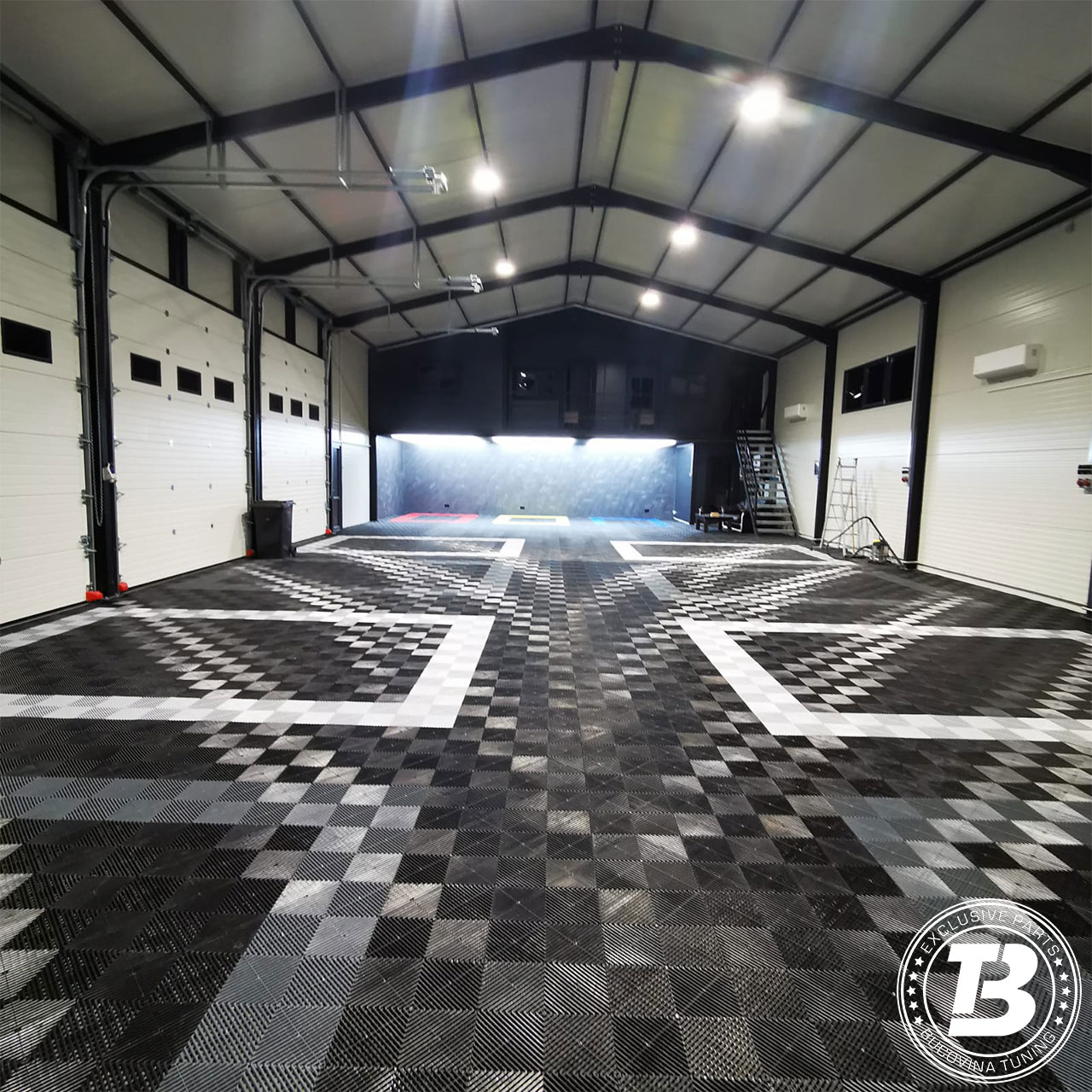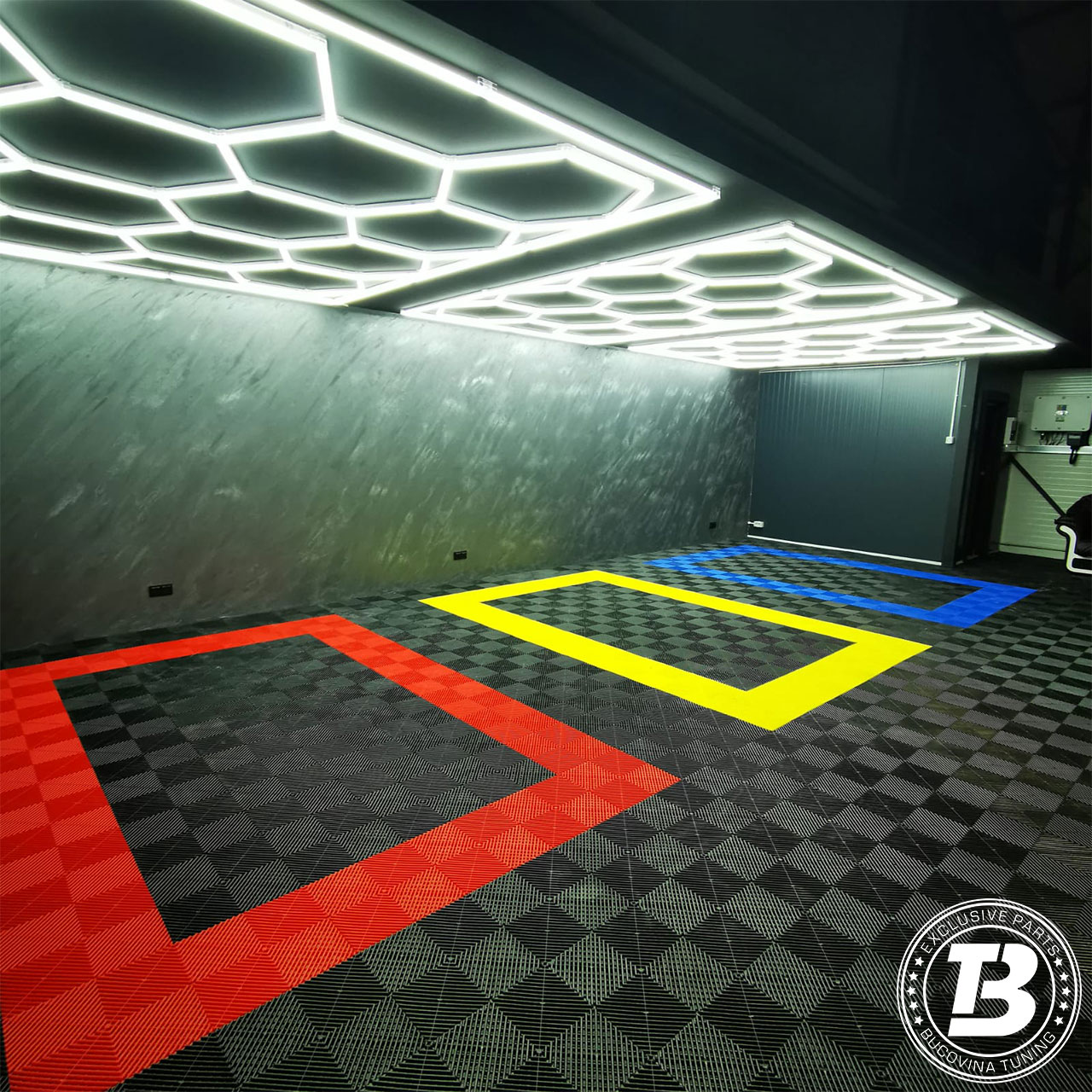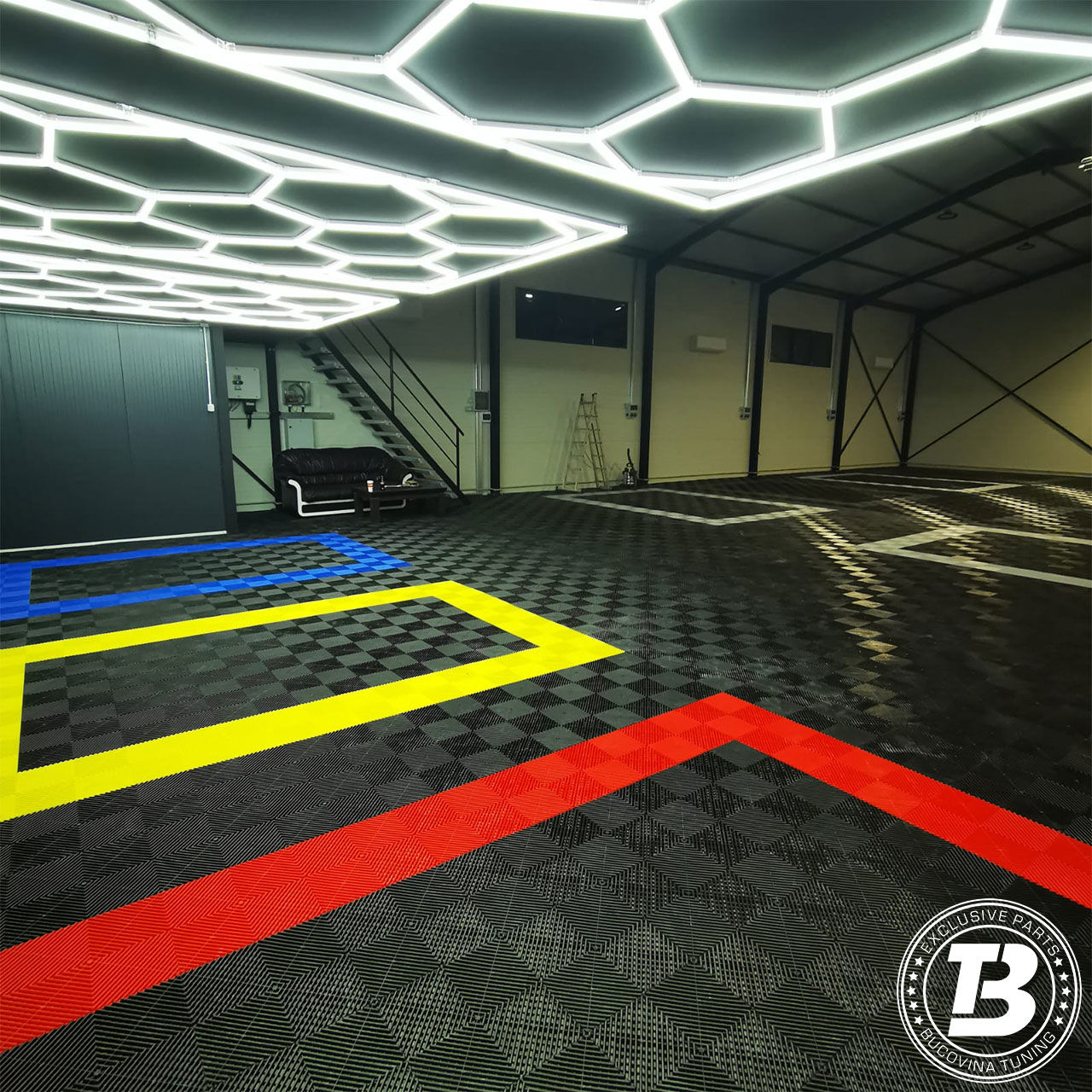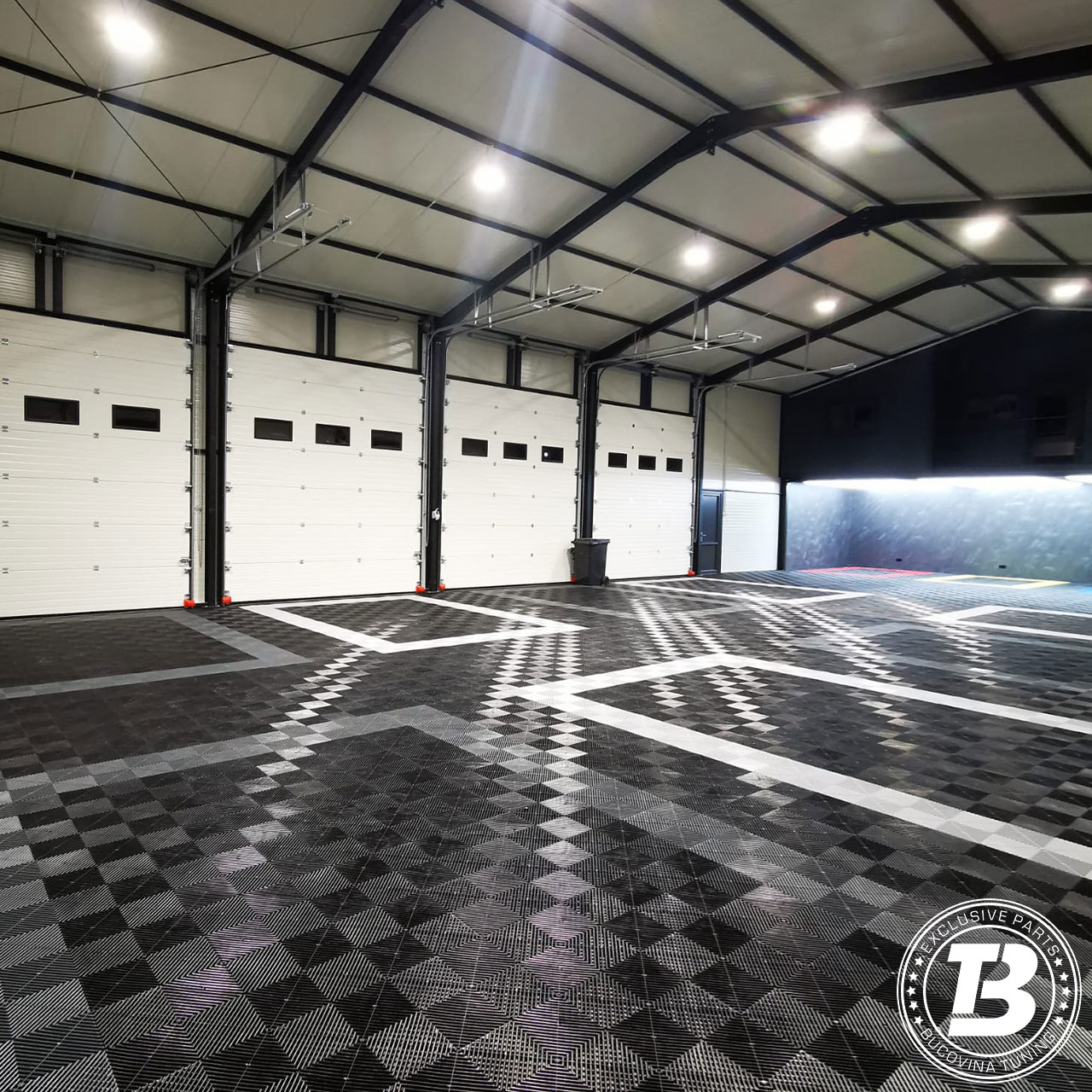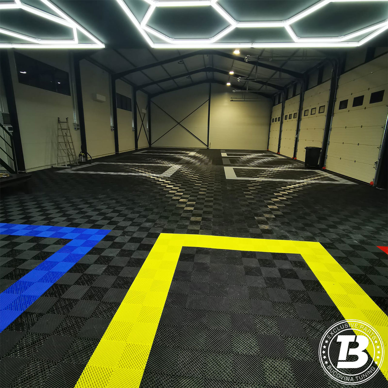 Pardoseala modulară pentru atelier de detailing auto oferă un echilibru ideal între funcționalitate și aspect premium. Designul modern creează un spațiu curat și bine organizat, punând în valoare finisajele mașinilor. Suprafața este ușor de întreținut și potrivită pentru lucrări de spălare, polish și protecție, iar sistemul modular permite montaj rapid și adaptare ușoară a spațiului.